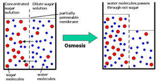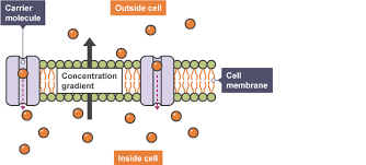 Diffusion is the net passive movement of particles (atoms, ions or molecules) from a region in which they are in higher concentration to regions of lower concentration. It continues until the concentration of substances is uniform throughout. Osmosis is a special example of diffusion. It is the diffusion of water through a partially permeable membrane from a more dilute solution to a more concentrated solution – down the water potential gradient) Note: diffusion and osmosis are both passive, i.e. energy from ATP is not used. A partially permeable membrane is a barrier that permits the passage of some substances but not others; it allows the passage of the solvent molecules but not some of the larger solute molecules. Cell membranes are described as selectively permeable because not only do they allow the passage of water but also allow the passage of certain solutes. The presence of particular solutes stimulates the membrane to open specific channels or trigger active transport mechanisms to allow the passage of those chemicals across the membrane. Active transport is the energy-demanding transfer of a substance across a cell membrane against its concentration gradient, i.e., from lower concentration to higher concentration. Special proteins within the cell membrane act as specific protein ‘carriers’. The energy for active transport comes from ATP generated by respiration (in mitochondria).