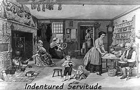 Indentured Servants Are considered free and are not literally "owned as property." Signed contracts because they wanted to pay a debt. They also wanted someone to pay their ocean passage to the Americas. Worked for 4 - 7 years. Got a set of cloths and 50 acres of land.