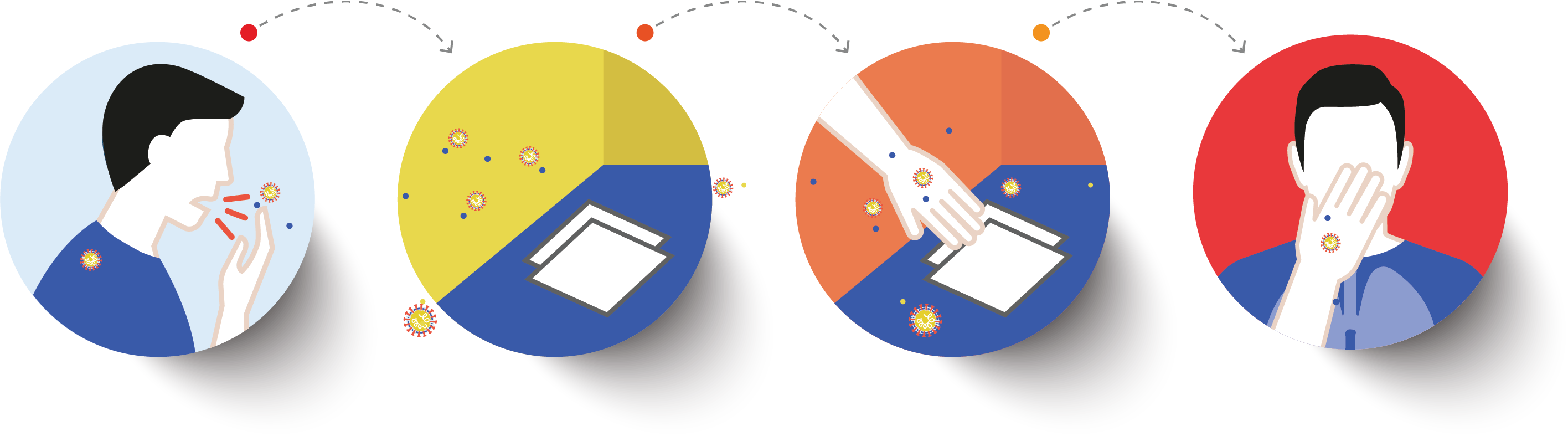 Al tocarse los ojos, la nariz o la boca con las manos contaminadas con el virus.