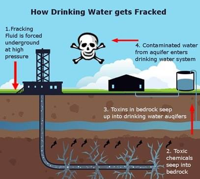 Risks of Fracking:- Contamination of Drinking Water- 700 chemical agents are used in the process of fracking- It releases greenhouse gases