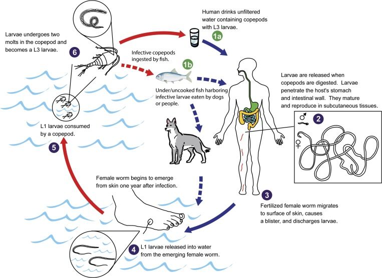 Parasitic Nematodes with multiple hosts Dracunculus medinensis or Guinea Worm (First image) Filarial Worms Heartworms (Dirofilaria immitis)