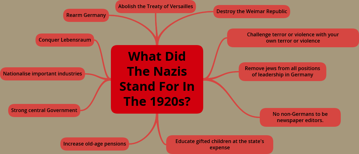 Hitler and the Nazis1919:November ; Hitler joins the German Workers party.1920:Hitler becomes leader of the Party renames the National Socialist German Workers' Party (Nazi Party)1921:Hitler founds the SA 'Sturm-Abteilung' to intimidate opposition parties.1923:November ; Hitler tries to seize power - the Munich or Beer Hall Putsch.1924:February ; Hitler's trial and imprisonment for leading the Munich Putsch. In prison he writes Mein Kampf which puts across his views.1929:The Wall Street crash. Depression follows Germany.1930:Nazis do well in elections. They win 107 seats.1933:January ; Hitler becomes chancellor.