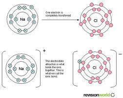 Forming BondsWhen different elements combine they form compounds.When a metal reacts with a non metal, ions are formed. Metal atoms lose one or more electrons to form positively charged ions. Non-metal atoms gain electrons to form negatively charged ions. The oppositely charged ions attract each other strongly and the compound has ionic bonds.The chemical formula of an ionic compound tells us the simplest ration of ions in the compound. For example, NaCl shows that sodium chloride is made from equal numbers of sodium ions and chloride ions.When non-metals combine, their atoms share electrons to form covalent bonds and molecules are formed.The chemical formula of a molecule tells us the number of atoms that have bonded together in the molecule. For example H20 shows that a water molecule contains two hydrogen atoms and one oxygen atom. Covalent bonds can be shown as lines between the atoms that are bonded together.