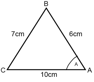 cosA = 10^2 + 6^2 - 7^2                 2(10)(6)