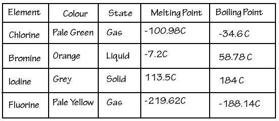 The halogens or halogen elements are a group in the periodic table. Consisting of five chemically related elements - Fluorine, chlorine, iodine, bromine and astatine.