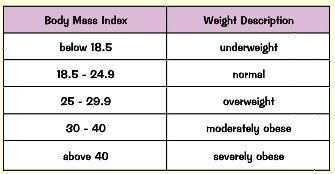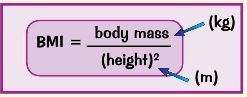The Body Mass Index (BMI) is used as a guide to help decide whether someone is underweight, normal, overweight or obese. It is calculated using this formula: