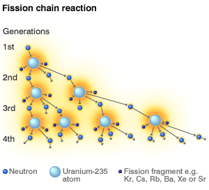 Fission The splitting of a large nucleus into two smaller nuclei Occurring alongside this reaction is a release of energy and neutrons A chain reaction occurs when at least one neutron is emitted, which then goes on to cause another fission reaction Nuclear reactors are based on the nuclear fission process