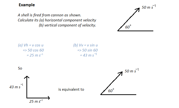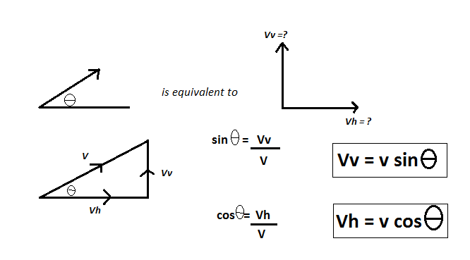 Any vector, v can be split up into a horizontal component Vh and vertical component Vv.