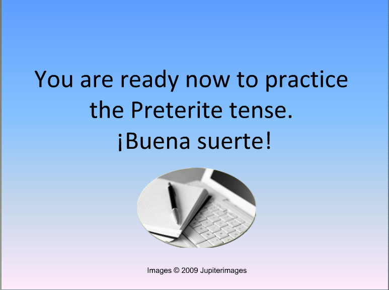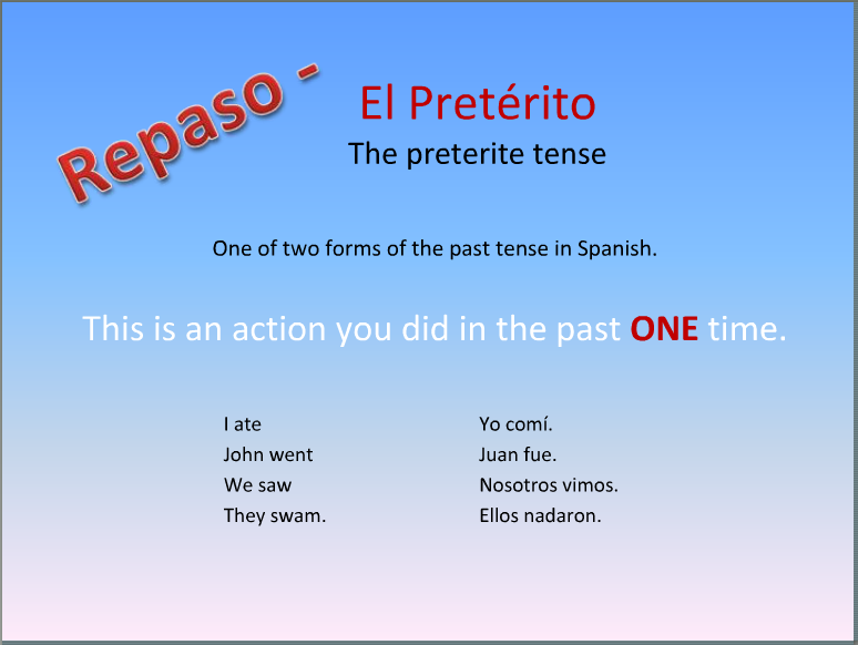 For a more detailed description on Preterite Tense visit this website for a step-by-step guide to using Preterite Tense: http://breeze.flvs.net:9090/p45572662/For more practice look at the document below: