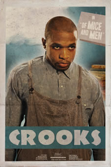 Crooks Crooks is the black stable hand or buck. He is the only permanent employee at the ranch, since he injured his back in an accident. His back gives him constant pain. He is the only black man around and is made to be isolated by his colour - he can't go into the bunk-house or socialise with the men. He is always called the 'nigger' by the men, which shows how racism is taken for granted. The men don't mean to insult Crooks every time they call him this, but they never think to use his name All this has made him proud and aloof. He is lonely. "S'pose you didn't have nobody. S'pose you couldn't go into the bunk house and play rummy 'cause you were black... A guy needs somebody - to be near him... I tell ya a guy gets too lonely an' he gets sick." The only time he mixes with the ranch hands socially is when they pitch horseshoes - and then he beats everyone! He has his own room near the stables and has a few possessions. He has books, which show he is intelligent and an old copy of the California Civil Code, which suggests he is concerned about his rights. He has seen many men come and go, all dreaming of buying a piece of land, but is now cynical, as no one has ever achieved it.