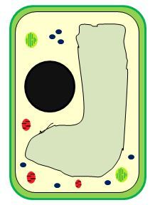THE GREEN OUTERLAYER is the cell wall (is not in animal cell) it is made of cellulose supports the cell and strengthens it as plant cells are more fragile