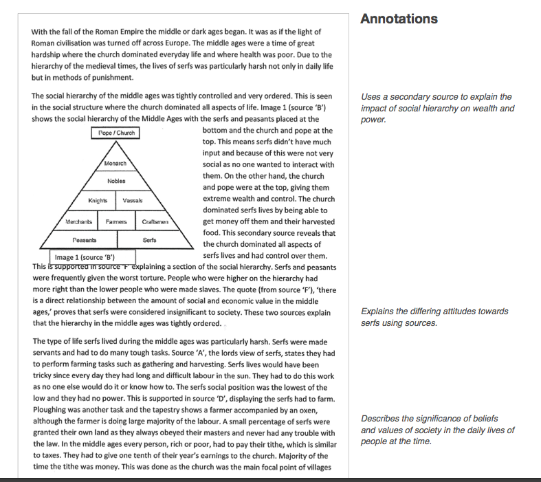 Uses a secondary source to explain the impact of social hierarchy on wealth and power