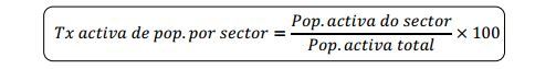 Estrutura sectorial da população: Para simplificar, actividades económicas semelhantes são agrupadas, dando origem a três sectores: o Primário (agricultura) o Secundário (indústria) o Terciário (serviços) População activa por sectores de actividade em valor absoluto ou em %