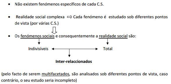 Conclusões: • O que distingue as diferentes C.S. entre si é a forma diferente de integrarem a mesma realidade social, possuindo, portanto, perspectivas próprias de observação e análise. • Cada C.S. fornece uma visão parcial e incompleta da mesma realidade social, pois, a sua complexidade de riqueza não se esgota com a explicação dada por uma única C.S. =>Independência e complementaridade das C.S.