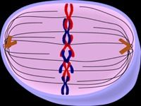 In meiosis, two divisions occur, resulting in four non-identical daughter cells. Each of these divisions, like mitosis, consists of a prophase, metaphase, anaphase and telophase, but slightly different things happen to the chromosomes:During prophase of the first division (Prophase I), homologous chromosomes align to form a bivalent. Some DNA is then swapped between adjacent chromosomes (genetic crossover or crossing over): (You don't need to know the word synapsis.)