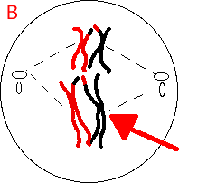 The important feature of this separation is that it is random: one daughter cell might have, say, 10 paternal and 13 maternal chromosomes. This random segregation (also known as independent assortment), combined with genetic crossover, gives rise to huge genetic variation in daughter cells.Meiosis I therefore halves the chromosome number, as each daughter cell contains 23 chromosomes (or whatever the haploid number is in the particular organism). However, each of the two daughter cells has two almost identical copies of each chromosome (not quite identical due to genetic crossover). This is unwanted, so the daughter cells divide again; this second division (meiosis II) is essentially identical to mitosis.