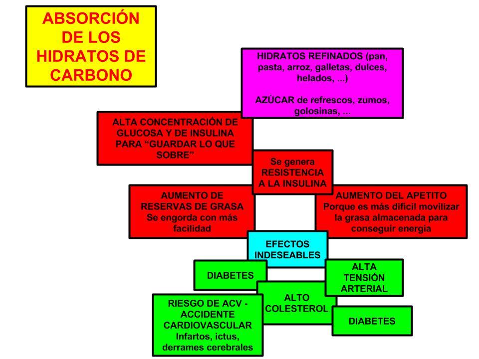 La liberación de la glucosa en la sangre se hace de forma mucho más lenta y progresiva. Esto provoca que no haya concentraciones muy altas y que no se libere demasiada insulina. La energía disponible se puede ir utilizando para las diferentes actividades cotidianas, liberándose con más eficacia cuando se va necesitando. La sensación de saciedad dura más tiempo, por lo tanto da hambre más tarde: SE COME MENOS. No se almacena tanta energía en forma de grasa: SE ENGORDA MENOS. Además, el aporte de vitaminas, minerales, fibra y proteínas es mucho mayor, como verás a continuación.