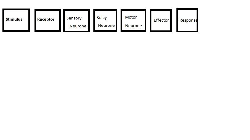 Reflex arc - neurones go through the spinal cord or unconscious part of the brain.When a receptor is subject to certain stimulus i.e. touching a naked flame, the receptor will send an impulse along a sensory neurone.When the impulse reaches the CNS it passes the message to a relay neurone, this is done across a synapse using chemicals.The relay neurone will pass the message to a motor neurone, The message travels down the motor neurone to the effector, in the case of putting your hand in a flame, the effector is most likely to be a muscle.The muscle will then contract to pull your hand out of the way of the flame. This process is so quick you don't even need to think about it!