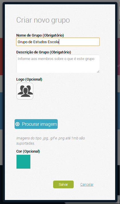 Dentro de cada grupo você terá algumas ferramentas que podem te ajudar no trabalho em grupo. Você pode (e deve) compartilhar recursos de estudo com o Grupo. Se for necessário crie um fórum de discussões para falar sobre o trabalho, tirar dúvidas ou deixar registrado o passo a passo do que se trata o grupo.