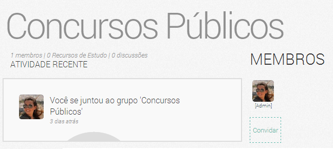 Ao criar o Grupo você pode começar a convidar pessoas para ele. Clique no botão "convidar".Um janela nova aparecerá e você pode convidá-los pelo nome de usuário no ExamTime ou pelo email. Personalize a mensagem que será enviada para que o usuário saiba do que se trata.Clique em "SALVAR". Os usuários listados receberão o convite para participar do Grupo.