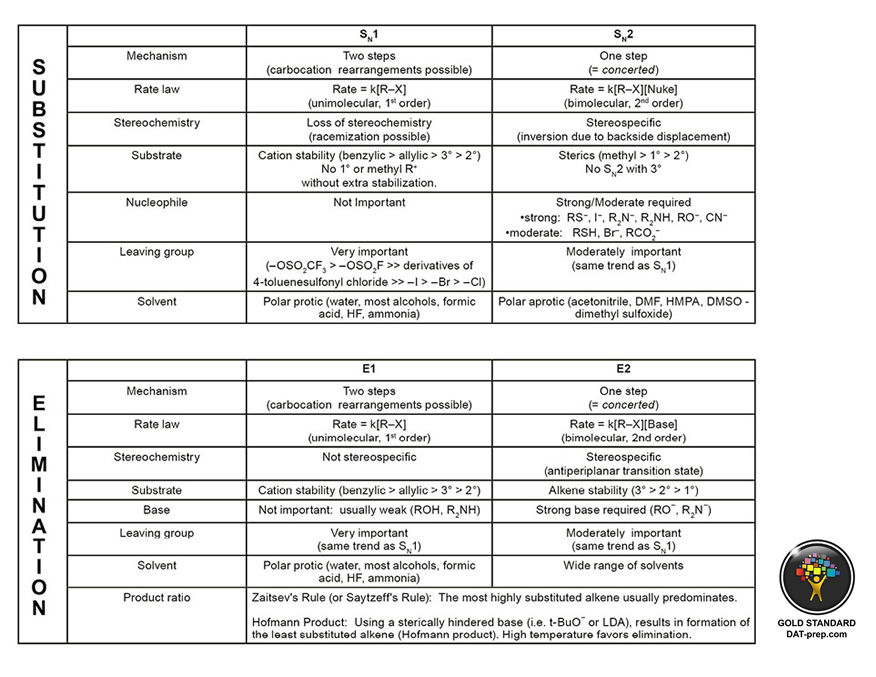 Substitution & EliminationSubstitution and elimination reactions are among the most common in organic chemistry. It is key to understand how and when these reactions happen. This section focuses on three concepts necessary for an understanding of substitution and elimination: the rate law, the leaving group, and the nucleophile.
