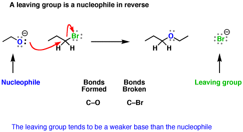 The Leaving GroupThe leaving group is a common feature to all substitution and elimination reactions. It is the part of a reactant molecule that leaves during the course of the reaction. In the process of leaving, it generally picks up an extra electron from its bond to the main molecule. The leaving group's stability after it has left the main molecule determines its efficacy.