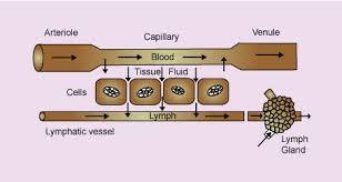 THE LYMPH:Tissue fluid doesnt contain proteins or big molecules.any excess fluid is drained through the lymph, which dumps the excess fluid back into the circulatory system.