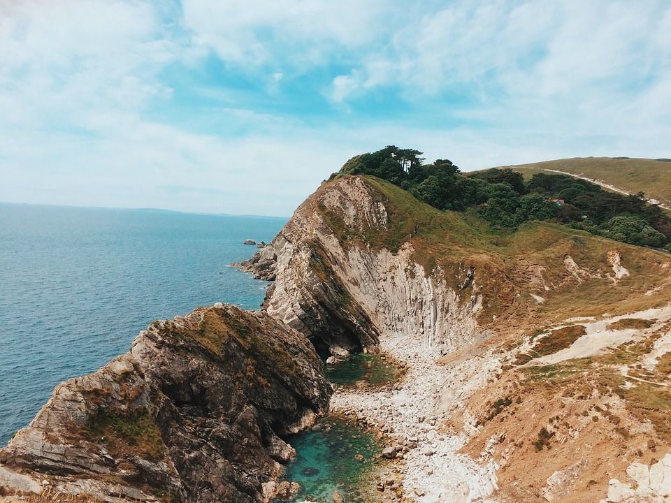Geological structures at the coast play a large role in the type of landforms present. Concordant coastlines have rocks that lie parallel to the coastline. They typically have alternative bands of hard and soft rock running parallel to the coastline, with the hard rock acting as a barrier to erosion. When the hard rock is eroded, the soft rock is then quickly eroded, posing danger to local infrastructure. This is the case with Lulworth Cove, Dorset. Discordant coastlines have bands of rocks that lie perpendicular to the coast. Alternating layers of hard and soft rock that run perpendicular to the coastline typically form headlands and bays.