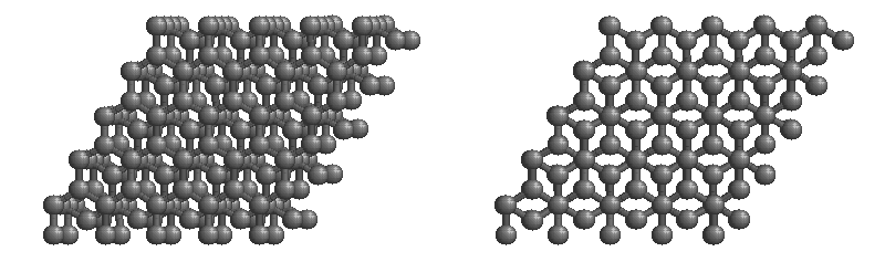 Usually, covalent substances have low melting and boiling points. However, some covalent substances have high melting and boiling points because they form a giant covalent structure. These substances are, in effect, one large molecule. Examples: Diamond, graphite, silica (found in sand) Diamond: Carbon atoms connected to four other carbon atoms by a strong covalent bond. This forms a tetrahedral unit cell. All four of carbon's electrons are involved in bonding with another carbon atom. Graphite: Layers of carbon atoms, arranged in hexagonal rings. Strong covalent atoms between carbon atoms in rings, weak Van Der Waals forces between layers. Delocalised system of electrons between the layers Diamond Unit Cell: