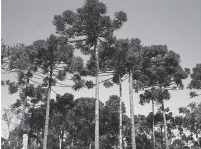 A imagem retrata a araucária, árvore que faz parte de um importante bioma brasileiro que, no entanto, já foi bastante degradado pela ocupação humana. Uma das formas de intervenção humana relacionada à degradação desse bioma foi