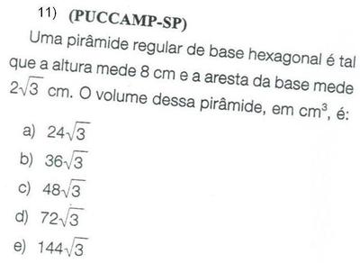 11) Conforme o exercício ao lado, o volume dessa pirâmide , em cm³, é: