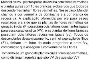 Cruzando-as com plantas recessivas, de flores brancas. As plantas VV produzirão apenas descendentes de flores vermelhas, enquanto as plantas Vv podem produzir descendentes de flores brancas.