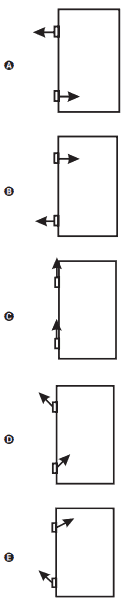 (Enem 2012) O mecanismo que permite articular uma porta (de um móvel ou de acesso) é a dobradiça. Normalmente, são necessárias duas ou mais dobradiças para que a porta seja fixada no móvel ou no portal, permanecendo em equilíbrio e podendo ser articulada com facilidade. No plano, o diagrama vetorial das forças que as dobradiças exercem na porta está representado em: