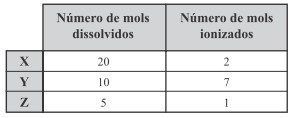 (U.F. Santa Maria-RS) X, Y e Z representam genericamente três ácidos que, quando dissolvidos em um mesmo volume de água, à temperatura constante, comportam-se de acordo com a tabela.