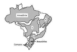 1, Caatinga, com clima tropical de altitude; 2, Mares de Morros, com rios intermitentes; 3, Cerrado, com mata de araucária.