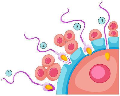 Para que a fecundação ocorra, o espermatozoide deverá percorrer sequencialmente as seguintes estruturas no sistema reprodutor feminino: [blank_start]Vagina[blank_end], [blank_start]útero[blank_end] e [blank_start]tuba uterina[blank_end]