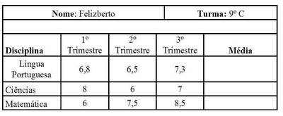 Na escola do Felizberto, a nota do aluno é calculada no final do ano por uma média aritmética ponderada.