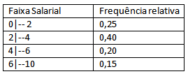 1- O departamento pessoal de uma firma fez um levantamento do salário dos 120 funcionários do setor administrativo, obtendo os resultados (em salários mínimos) da tabela ao lado: a) Calcule a média, a variância e o desvio padrão.