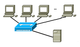 software cliente com o respectivo servidor instalado em um equipamento em uma LAN (local area network) apresentam lentidão. Após várias reclamações dos usuários, o responsável pelo software e o gerente de redes foram convocados para analisar o problema. A partir de uma análise da topologia da rede, foi identificado que o departamento possuía 45 microcomputadores clientes na mesma LAN, interligados ao servidor por meio de um único hub, conforme ilustrado na figura a seguir. Concluiu-se que o problema de lentidão estava relacionado ao elevado número de colisões na LAN.