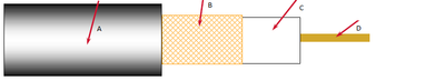 O Cabo Coaxial é amplamente utilizado ainda nos tempos atuais. Abaixo há uma ilustração do cabo. Selecione os itens corretos referentes a cada uma das partes do cabo: