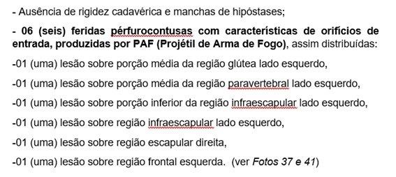 Informações sobre as vestes do cadáver, bem como sobre tatuagens ou marcas identificadoras são desnecessárias e podem ser excluídas da redação;