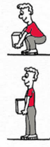 Levantar objetivos pesados do chão, dobrado a coluna.