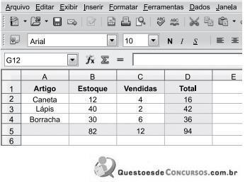 Observe a figura a seguir, ela apresenta uma tabela extraída do Calc , em sua configuração padrão.