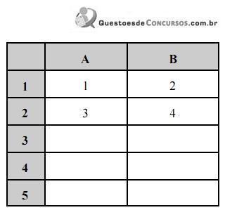 Se, em uma célula em branco de uma planilha do Libre Office Calc semelhante à mostrada abaixo, for inserida a fórmula =(SOMA(A1:B2)+SOMA(A1;B2)), o resultado obtido será 15.
