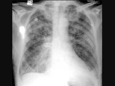 Borramento algodonoso bilateral e difuso edema pericárdico