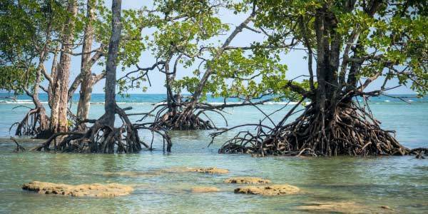 As plantas típicas desse ecossistema apresentam raízes com modificações que permitem a obtenção de gás oxigênio do ar.