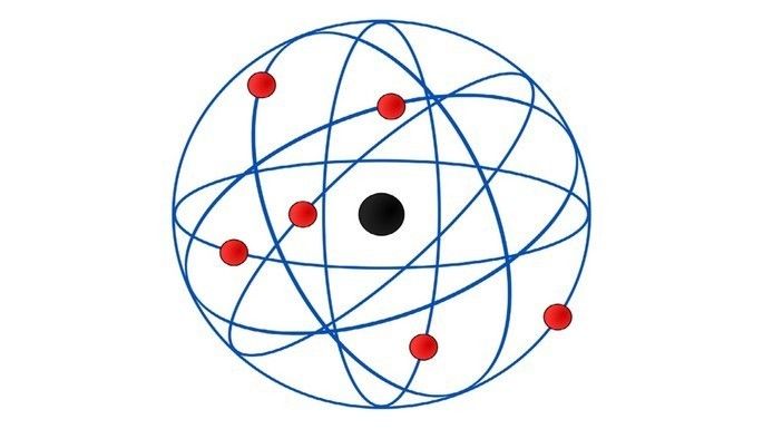 No modelo de Bohr, os elétrons estão em órbitas circulares com diferentes níveis de energia e se movimentando ao redor do núcleo central.