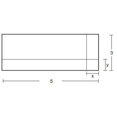 Um forro retangular de tecido traz em sua etiqueta a informação de que encolherá após a primeira lavagem mantendo, entretanto, seu formato. A figura a seguir mostra as medidas originais do forro e o tamanho do encolhimento (\(x\)) no comprimento e (\(y\)) na largura. A expressão algébrica que representa a área do forro após ser lavado é \((5 – x) (3 – y)\).