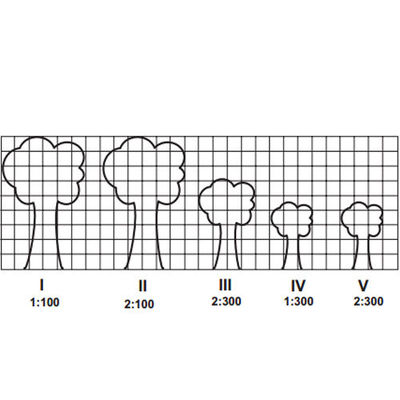 Um biólogo mediu a altura de cinco árvores distintas e representou-as em uma mesma malha quadriculada, utilizando escalas diferentes, conforme indicações na figura a seguir.