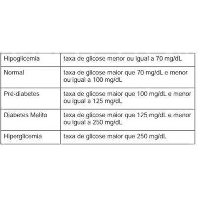 Um laboratório realiza exames em que é possível observar a taxa de glicose de uma pessoa. Os resultados são analisados de acordo com o quadro a seguir.